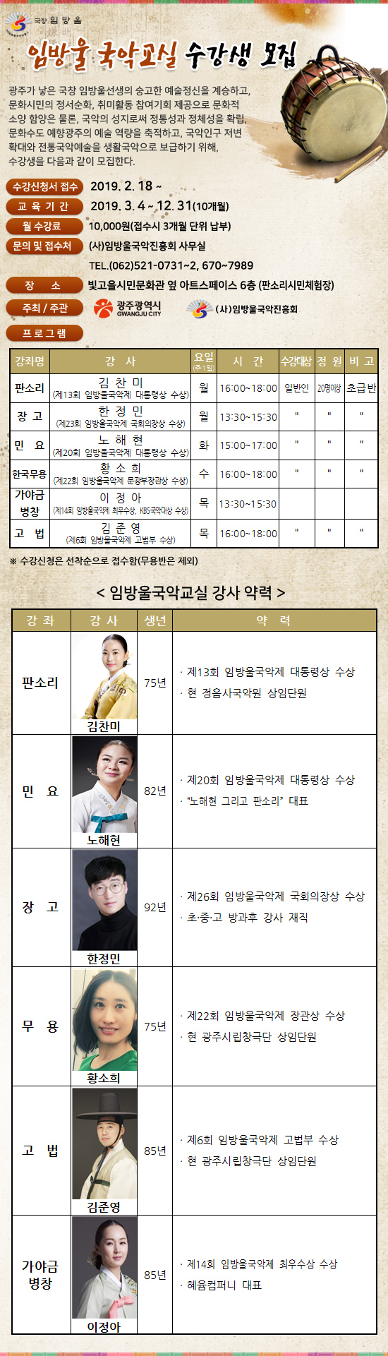 2019³â ÀÓ¹æ¿ï ±¹¾Ç±³½Ç ¼ö°»ý ¸ðÁý