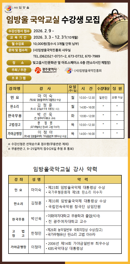 2026³â ÀÓ¹æ¿ï ±¹¾Ç±³½Ç ¼ö°»ý ¸ðÁý